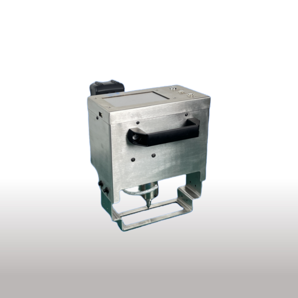 手持電動(dòng)打標(biāo)機(jī),采用電磁為動(dòng)能的方式代替氣動(dòng)高頻微沖擊點(diǎn)陣打印,革命性的節(jié)省了氣源。同時(shí)使用觸摸屏集成控制,減少了電纜的束縛。